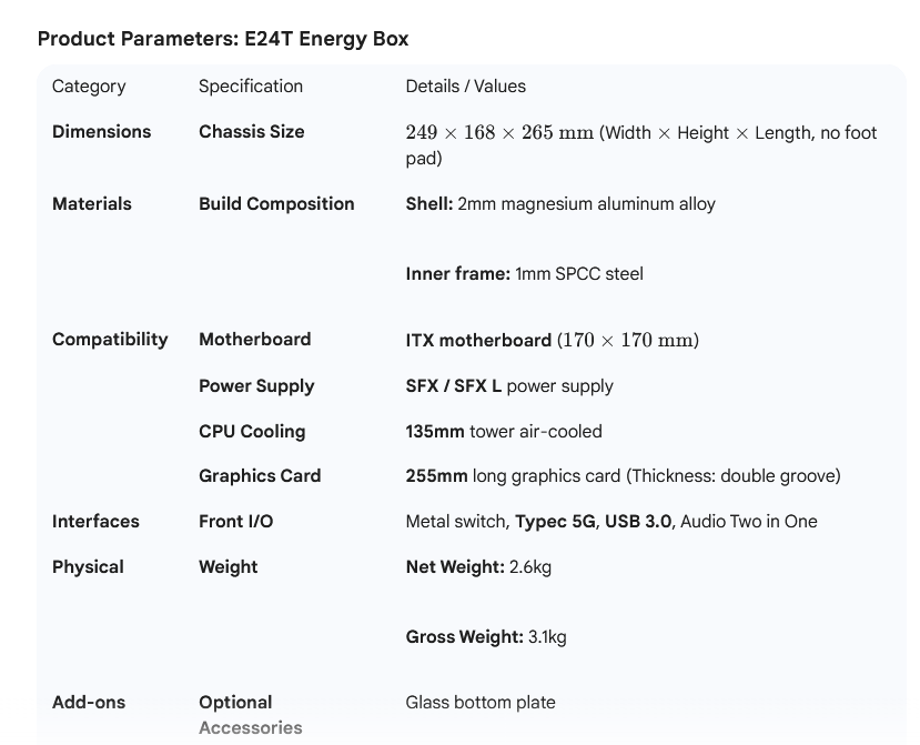 Search engines love specifics, and this post has them: E24T Energy Box horizontal computer case, ITX small case, SFX power, aluminum alloy, air-cooled, AliExpress delivery, and returns. Combine that with the humorous storytelling and case studies? You’ve got a recipe for snippets, viral shares, and Google love.